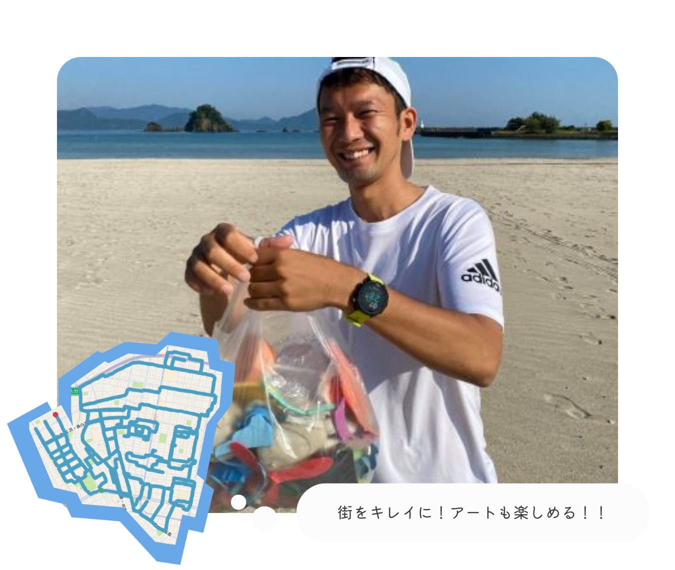 GPSラン、GPSウォーク、GPSプロギング(ゴミ拾いアートウォーク)などを通じて、 「スポーツ」「アート」「環境活動」を融合。 地域の人々をつなぎ、SDGsや震災復興支援といった社会課題に寄与する活動を広げています。